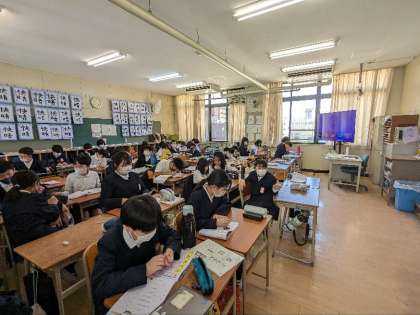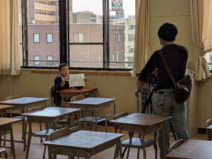 今日は、卒業アルバム用の写真撮影をしています。集合写真や個人写真、グループ写真などを撮ります。