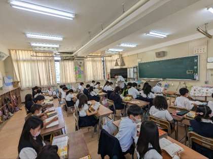 国語の授業の様子です。国語辞典の使い方を学んでいました。使い方を覚えたら積極的に活用しましょうね。