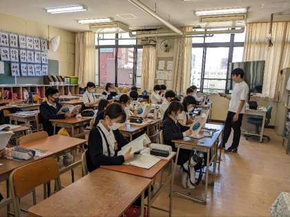 国語の授業の様子です。習熟度別少人数で学習をしていました。説明文の学習でした。内容を素早く理解するには、読解力が大切です。しっかりと読み込むために、読書習慣を身につけましょう。