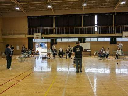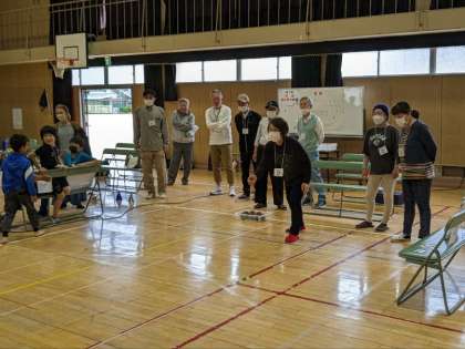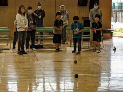 講堂で町会主催で、第1回中道ボッチャ大会が行われました。8チームが参加してトーナメント方式で試合をしました。ボッチャは、小さい子どもから高齢者まで一緒に楽しめるスポーツです。子ども達だけのチームでも家族でのチームでも参加できます。5年生のチームが3位になり銅メダルを獲得しました。おめでとうございます!