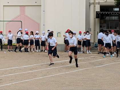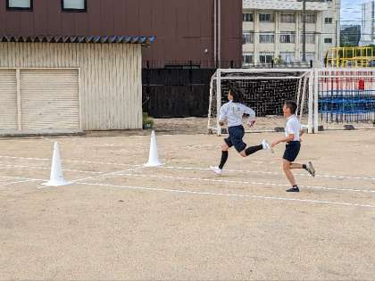 体育の授業の様子です。50メートル走の様子です。スポーツテストの種目の50メートル走をしました。昨年と比べて記録が伸びたのか気になりますね。