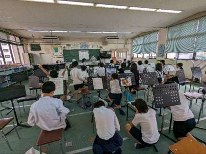 音楽の授業の様子です。「こいのぼり」を曲想を変えたときの違いを聞き取っていました。みんな積極的に手を挙げて違いを発表していました。
