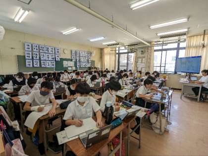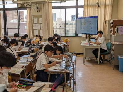 社会科の授業の様子です。調べ学習をしていました。政治について調べていました。パソコンを使えば、教科書より新しい情報を得ることができますね。最新の知識を身につけていきましょう。