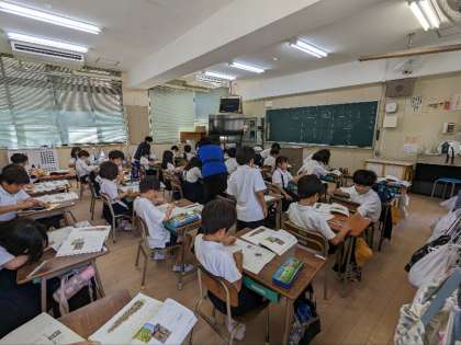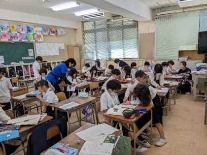 国語の授業の様子です。説明文の読み取りをしていました。ワークブックに読み取ったことを記入していました。