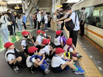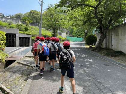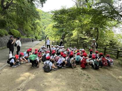 近鉄電車に乗って公園に着きました。学校にはない森林の中で、初夏の自然を楽しみましょう。
