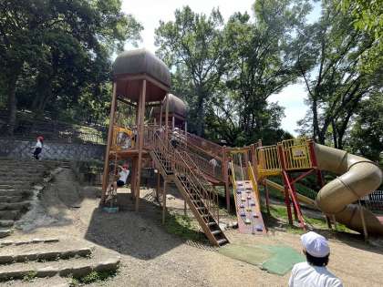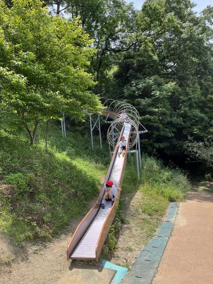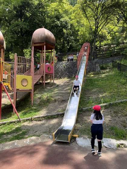 遊具で遊んでいます。近くの公園のものと規模が違います。