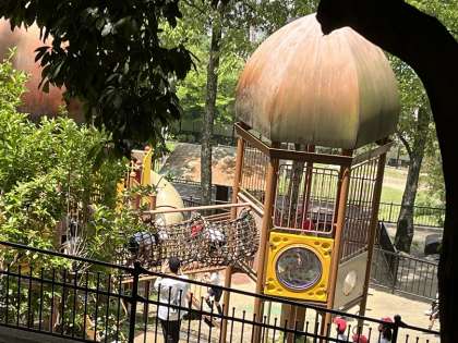 遊具で遊んでいます。すごい角度ですね。すべるのが怖いです。