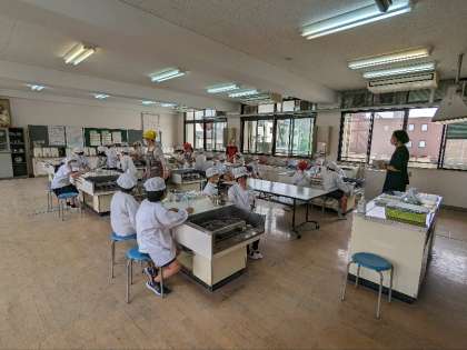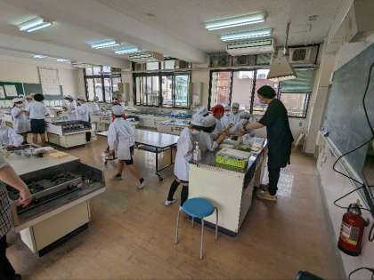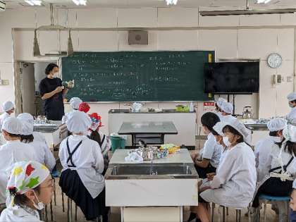 家庭科の調理実習の様子です。お茶をいれてお茶会をします。準備を整えて、お湯を沸かして茶を入れます。ごごのひととき、ティータイムを楽しみましょう。