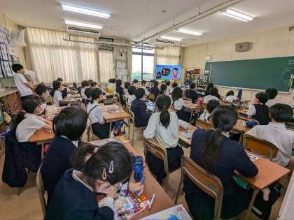 大阪府警の方から非行防止教室の授業を受けました。いただいた資料を基にお話をしていただきました。今日の学んだことをを忘れないで今後に活かしていきましょう。