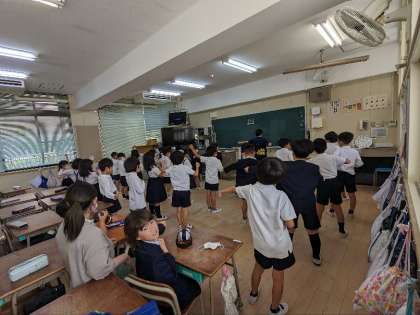 教室で、団体演技の振り付けを覚えていました。1.2年生の団体演技は、皆さんが1番楽しみにしているプログラムです。いい笑顔で踊れるように、今はしっかりがんばりましょう。