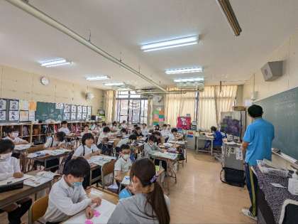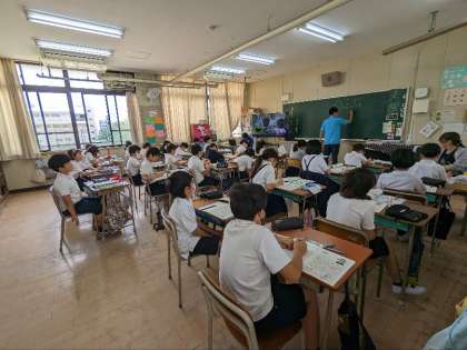 理科の授業の様子です。メダカの誕生の学習をしていました。メダカを教室で飼育して毎日観察をします。しっかり育てて子メダカをふかさせましょう。
