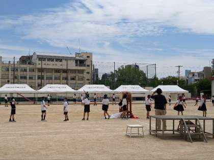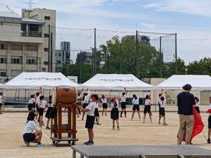 お昼休み運動場で応援団の練習を行いました。応援団長の、気合の入った大きな声が響きます。きびきびとした動きが素晴らしいです。運動会当日が楽しみです。