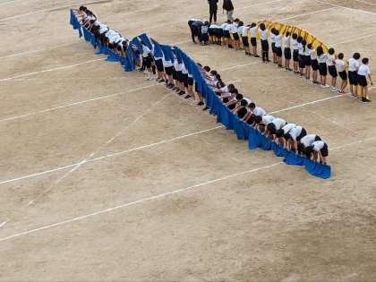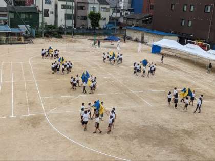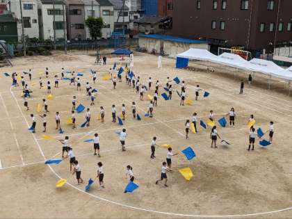 運動会の団体演技の練習の様子です。隊形の変化を見てください。入場から退場まで移動があってとても素敵です。皆さんも楽しみにしていてください。