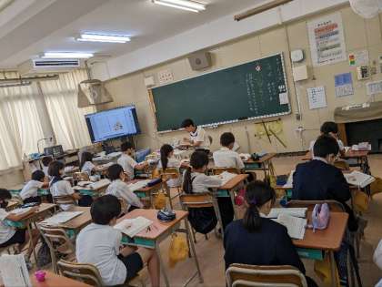 国語の授業の様子です。デジタル教科書を使って朗読を聴いていました。いろいろな機能があってとても便利です。来年度には教科書が新しくなります。ますます機能が充実するようです。楽しみですね。