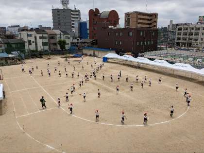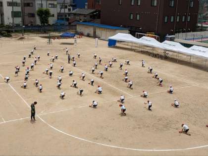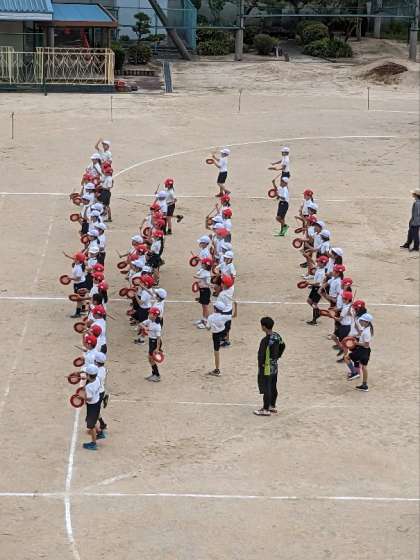 運動会の団体演技の最終の練習の様子です。遠くから、隊形移動を撮りました。いろいろな動きがあるので楽しみにしていてください。