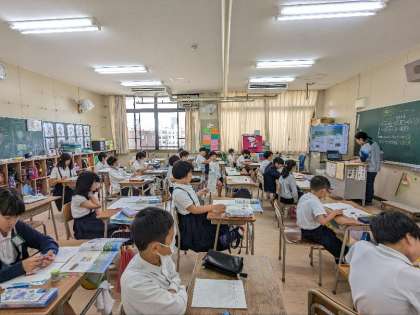社会科の授業の様子です。北海道の農業について調べていました。十勝平野の大規模な農業について考えていました。実際に北海道に足を運んで、自分の目で確かめてみたいですね。