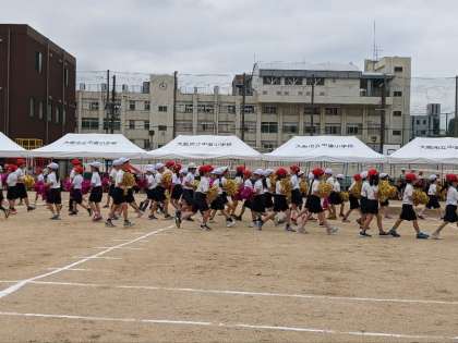 1・2年生の団体演技「オーバーナイト・サクセス」の様子です。