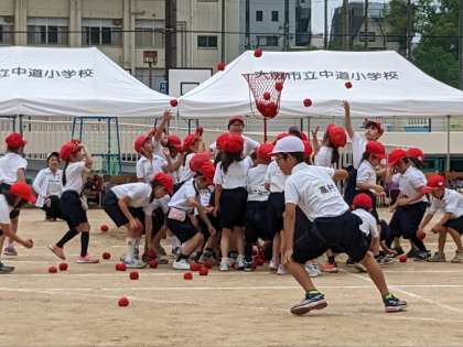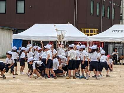 1・2年生の団体競技「玉入れコンコン」の様子です。