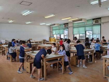 図画工作科の授業の様子です。図工室で陶芸の学習をしていました。粘土を切り分けてこねていました。何ができるのでしょうか?気になりますね。