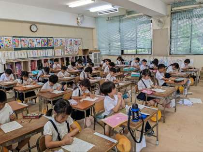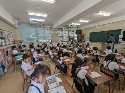 算数の授業の様子です。計算問題の答え合わせをしていました。1人ずつ答えを発表し、丸をつけていました。正確に早く答えを出せるようにがんばりましょう。