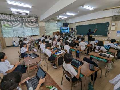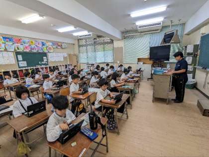 算数の授業の様子です。パソコンを使って、練習問題をしていました。パソコンなら答え合わせがすぐにできるし、間違いを分析して、個に合った問題を提示してくれますね。うまく活用しましょうね。