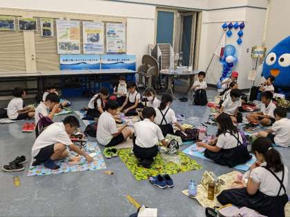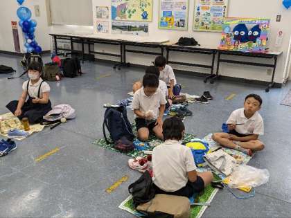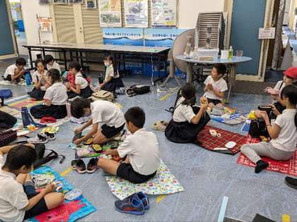 食事の様子です。冷房がきいた部屋でおいしく食べています。