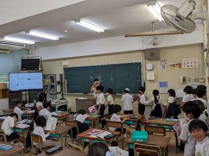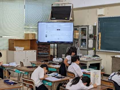 国語の授業の様子です。新出漢字の学習をしていました。ドリルに書いた漢字を点検していました。大きな丸をもらった子が多くいました。ていねいに書いて、しっかり覚えましょう。