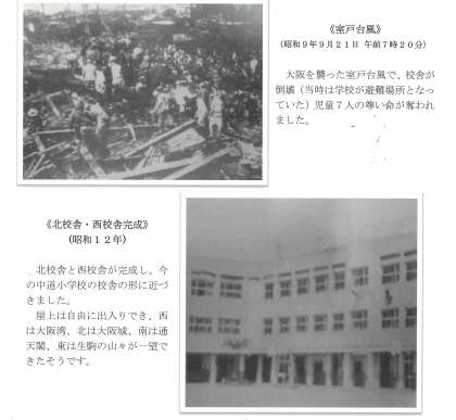 台風などの災害や戦争による苦難の時代もありました。苦難の時代も地域の方々はじめたくさんの方々に守られ、現在の中道小学校があります。