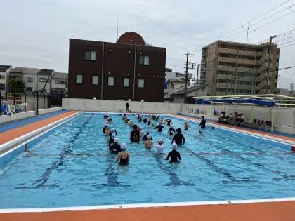 3時間目に、3・4年生のプール開きを行いました。日差しがなく少し肌寒かったですが、元気にがんばっていました。早く梅雨が明け、夏空のもとで泳ぎたいですね。