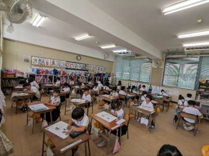 国語の授業の様子です。テストを受けていました。突然の雨でプール学習が中止になったため、体を使う学習から頭を使う学習に変わりました。しっかり頭を働かせてがんばりましょう。