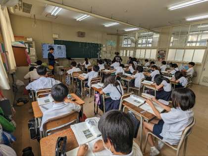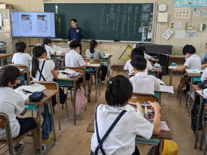 国語の授業の様子です。2社の新聞の同じ記事を読み比べていました。共通しているもの、違う内容のものを拾い出し、まとめていました。記事を読み比べることは、情報の取捨選択をすることが重要な現代人に取って、大切な力かもしれませんね。