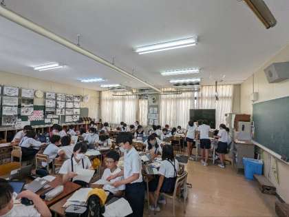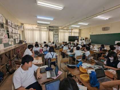 社会科の授業の様子です。歴史で学んだ事象をパソコンで調べていました。習ったことを自分で深く掘り下げて調べる。素晴らしいですね。調べたことを身につけて、どんどん知識を増やしていきましょう。