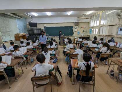 国語の授業の様子です。説明文の学習をしていました。みんなで音読をして内容を考えていました。分かったことをプリントに記入しました。積極的に手をあげて自分の意見を発表していました。