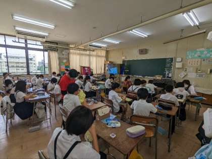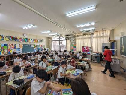 家庭科の授業の様子です。裁縫をしてい得手不得手は不得手はありますが、夏休みに練習すれば上達しますよ。がんばってみましょう。