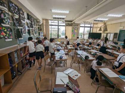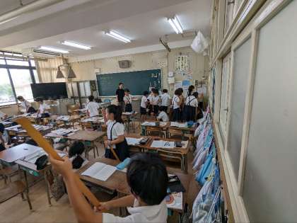 算数の授業の様子です。1メートルさしを使って、教室の長さを調べていました。実際に調べると楽しいですよね。きちんと測ることができたのでしょうか。