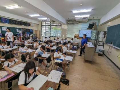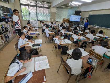 算数の授業の様子です。ひっ算の問題を解いていました。夏休みにも多くの練習問題が出されるので、早く解けるようにがんばりましょう。