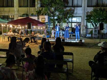 ステージの最後は、リプライズさんのコンサートでした。美しい月夜に、きれいなハーモニーが校庭に響いていました。とても楽しいひと時を過ごすことができました。