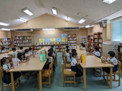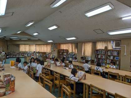 読書活動の様子です。図書館で自由読書を楽しんでいます。いろいろなジャンルの本を読んで読書を好きになりましょう。