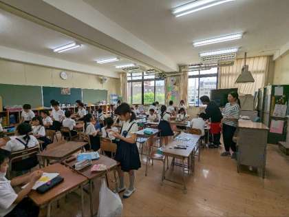 話し合い活動の様子です。体育のグループについて話し合っていました。グループの名前や活動を決めていました。