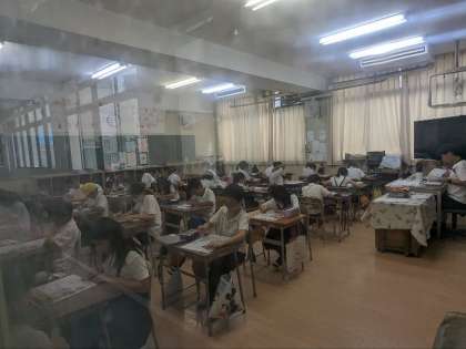 理科のテストの様子です。邪魔になってはいけないので、入室せずに外から撮りました。みんながんばれ!