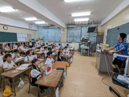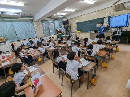 国語の授業の様子です。「ことばあそびうたを つくろう」の学習のをしていました。もこもこ・ほこほこ・はりはりなどの言葉は何を表すのかを考えていました。