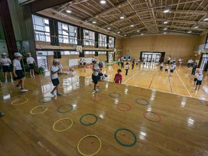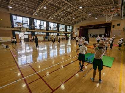 体育の授業研究会を講堂で行いました。体づくりの運動の授業研究会でした。4種類のステージが用意され、子ども達は、それぞれのステージで自分の目標にチャレンジしていました。クリアできたときの喜びを友達と共有して楽しく活動していました。多くの教職員が見ている中、子ども達はいっぱい体を動かし、満足して授業を終えました。