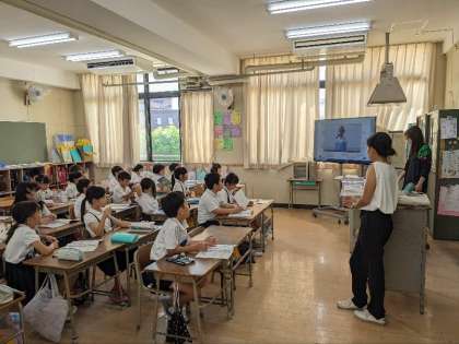 外国語活動の授業の様子です。likeの使い方を学んでいました。What do you like〜の質問に、I like〜で答えていました。