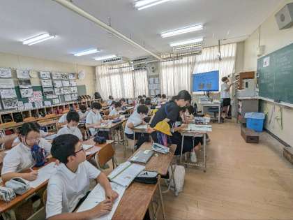 算数の授業の様子です。習熟度別少人数で学習をしていました。容積の学習をしていました。容積は立体に入る容量のことです。求め方は、体積と同じです。容器の厚さだとか少し応用した問題もありますが、しっかり練習してマスターしましょう。