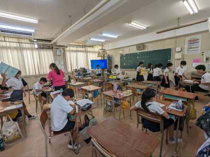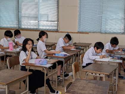 算数の授業の様子です。習熟度別少人数で学習をしていました。図形の学習でした。平行線の作図をしていました。平行線の書き方には決まりがあります。その通りに書けているか点検をしていました。