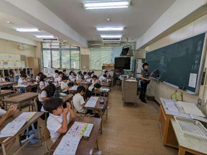 国語の授業の様子です。新出漢字の学習でした。「徒」の字を学んでいました。ていねいに書き順を腕を使って確かめていました。しっかり覚えておきましょう。