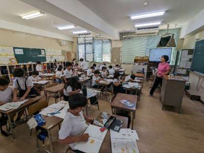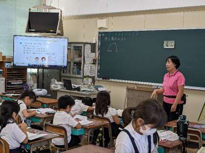 算数の授業の様子です。図形の学習でした。四角形を切り分けて、三角形や四角形を作っていました。みんな、問題の指示通りに切り分けることができたのでしょうか。よく考えてから切りましょう。