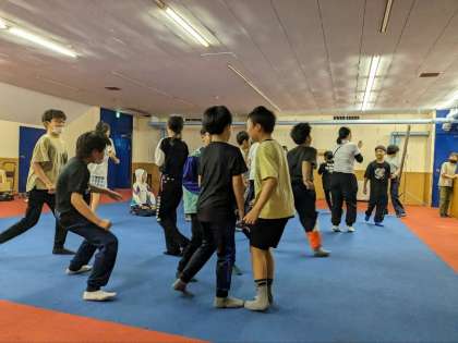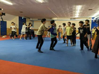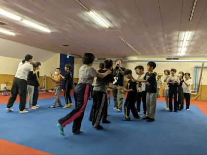 じゃんけん列車をしています。うるさいほど盛り上がっています。ギャーギャー言ってます。