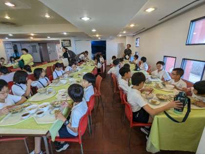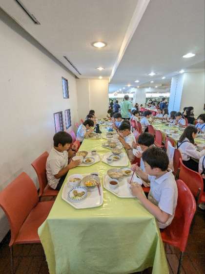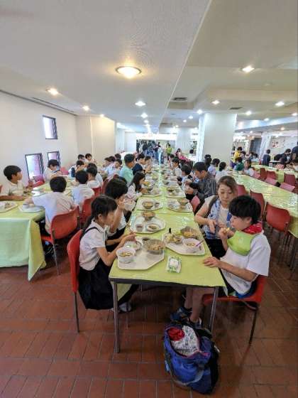 みんなしっかり食べています。後は片付けや掃除をして、閉舎式をすると、海洋センターともお別れです。
