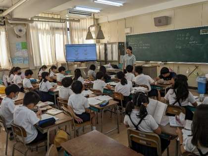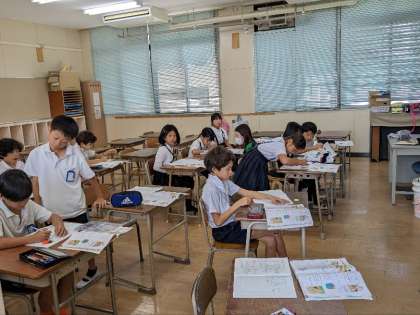 算数の授業の様子です。習熟度別少人数で学習をしていました。余りのある割り算の計算をしてしていました。余りのある計算は、文章題でも出でてきます。余りを切るのかそれともたすのか、よく考えて答えを出しましょう。